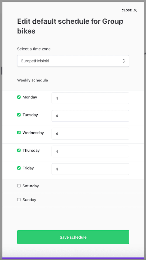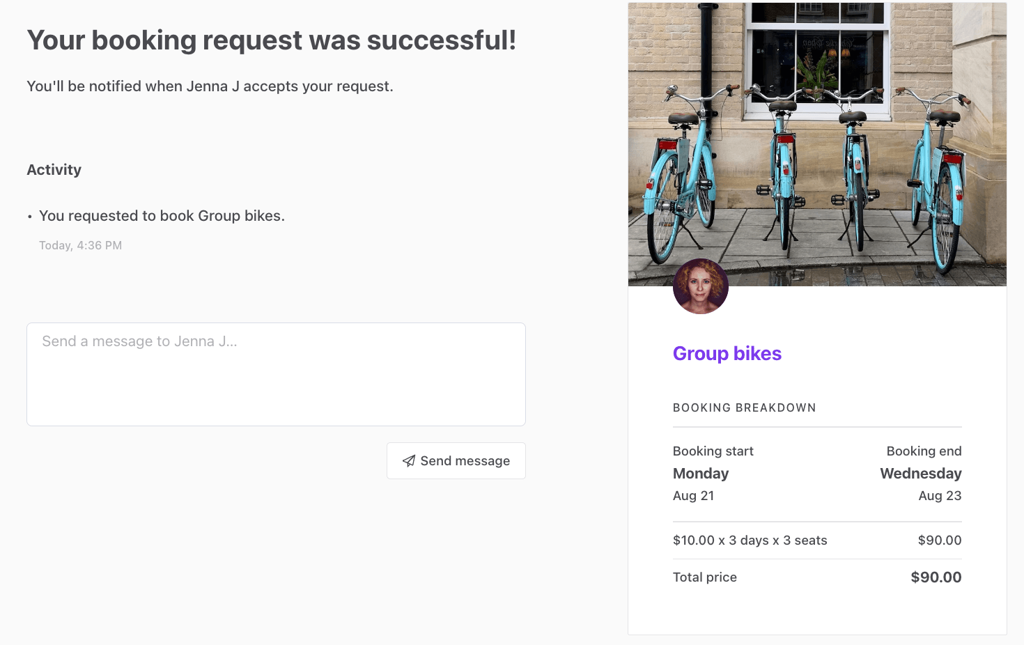 On our imaginary bike rental marketplace, some providers may have several similar bikes to rent. Instead of needing to create separate listings for each similar bike, we can add “seats” to a single listing. This makes it possible for customers to book several similar bikes in one go for the same time period.