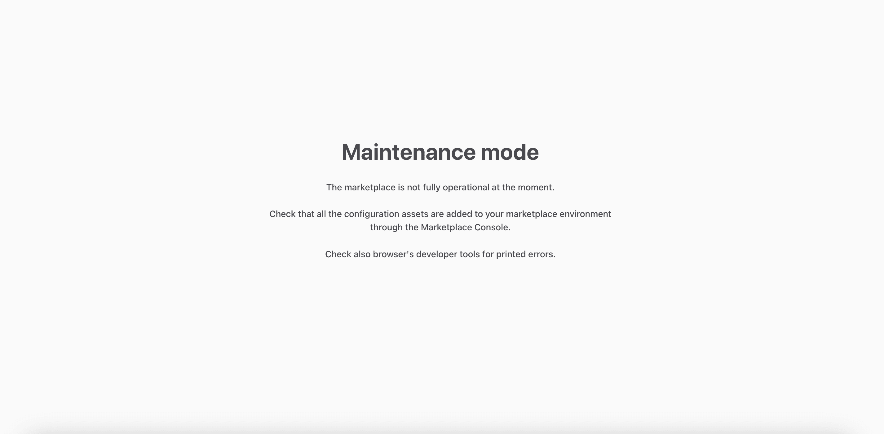 If the marketplace is missing some mandatory configurations, you will see a fallback page with the title "Maintenance mode".